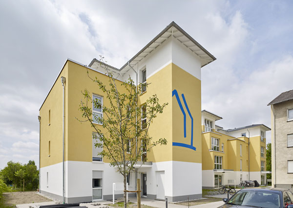 Die Gebäudestruktur ähnelt drei nebeneinanderstehenden Doppelhäusern. Mit seinen Vor- und Rücksprüngen und einem Staffelgeschoss im Dachgeschoss wird das Volumen des Baukörpers in eine sympathische Silhouette gegliedert.