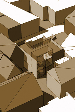 de Hinterhofgrundstück untersucht, um die nicht mehr adäquate Situation zu heilen. Die komplizierte innerstädtische Konstellation des gefundenen, angrenzenden Hinterhof-