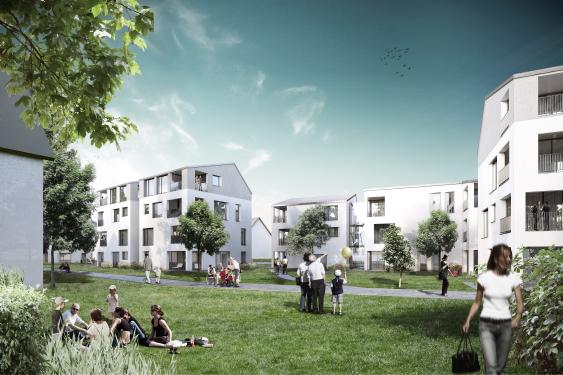 Das Wohnquartier aus den 1950er Jahren hat enormen Instandhaltungsrückstau und Leerstand aufzuweisen. Die Möglichkeiten einer technischen und energetischen Sanierung wurden dem Abriss und Neubau gegenüber gestellt. Große Qualität des Areals ist die inner¬städtische und dennoch grüne Lage, sowie die Chance, ein gesamtes Quartier zu ent-wick¬eln. Nachhaltigkeit heißt beim Neubau der 70 Wohneinheiten: